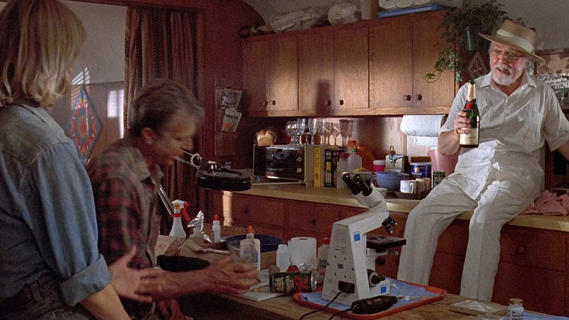 Cast: Sam Neill as Grant, Laura Dern as Ellie, Jeff Goldblum as Malcolm, Richard Attenborough as Hammond, Bob Peck as Muldoon, Martin Ferrero as Gennaro, BD Wong as Wu, Samuel L. Jackson as Arnold, Wayne Knight as Nedry, Joseph Mazzello as Tim, Ariana Richards as Lex, Gerald R. Molen as Harding, Miguel Sandoval as Rostagno, Cameron Thor as Dodgson, Christopher John Fields as Volunteer #1, Whit Hertford as Volunteer Boy, Dean Cundey as Mate, Jophery C. Brown as Worker in Raptor Pen, Tom Mishler as Helicopter Pilot, Greg Burson as 'Mr. D.N.A.' Voice (voice), Adrian Escober as Worker at Amber Mine, Richard Kiley as Jurassic Park Tour Voice (voice), Brad M. Bucklin as Lab Technician (uncredited), Laura Burnett as Archeologist (uncredited), Michael Lantieri as Customer at San Jose restaurant (uncredited), Gary Rodriguez as Miner - Dug Out Mosquito (uncredited), Lata Ryan as Control Room technician (uncredited), Brian Smrz as Driver of Grant, Sattler & Malcolm's Jeep (uncredited), Rip Lee Walker as Raptor #1 (uncredited), Robert 'Bobby Z' Zajonc as InGen Helicopter Pilot (uncredited)